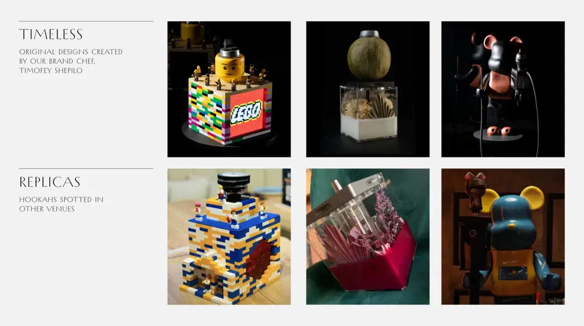 The way we make our menu has changed a lot over time. Up until five years ago, the recipe for our signature hookahs was all about the stuff inside the base. But then it got a bit boring, so we’ve started focusing more on how a hookah looks, the story behind it, and its shape. We’ve started using new materials, textures, and technologies.