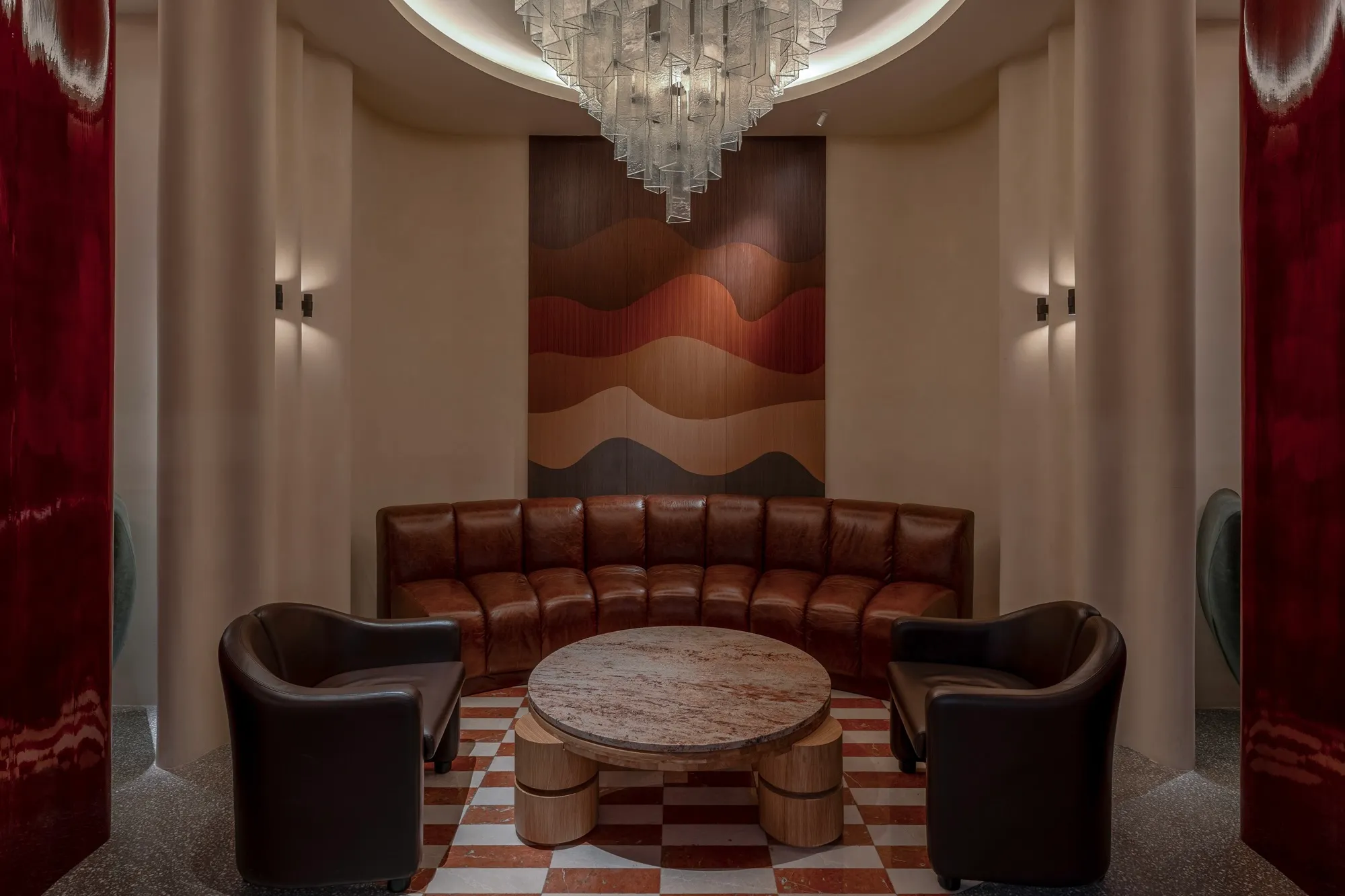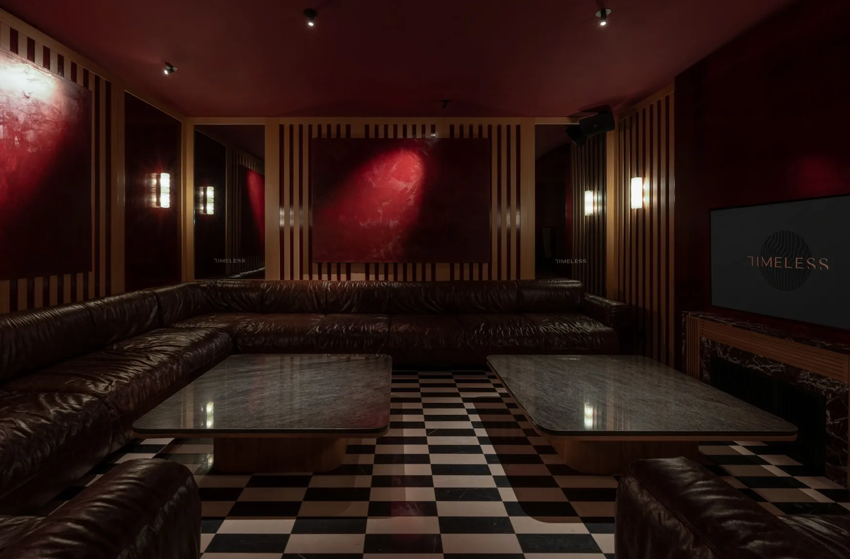 Интерьеры TIMELESS в Москва-Сити выполнены с отсылками к роскошным сигарным комнатам, апартаментам и отелям, в которых проводили время элиты первой половины ХХ века. Кроме этого мы дали себе волю в оммажах на культовых современных художников и классиков архитектуры и интерьерного дизайна.